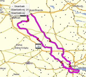 En lille hyggetur på ca. 160 km med stop på Haughus Gods i Jelling, hvor der er mulighed for frokost. Turen går videre forbi Munkebjerg og Ibæk Strandvej, hvor der er mulighed for dessert.