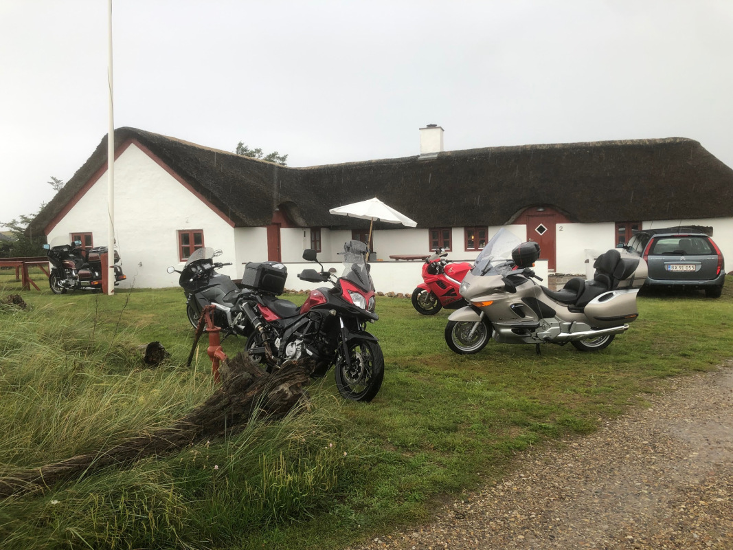 Frokostpausen måtte forlænges lidt med kaffe og kage indtil regnen var drevet over. Hjemturen foregik i nogenlunde tørvejr 🏍💨😊